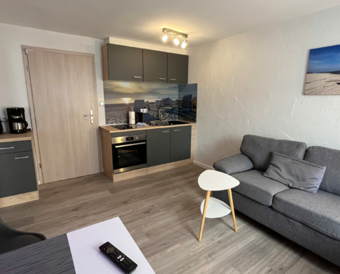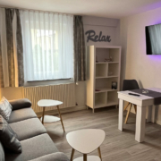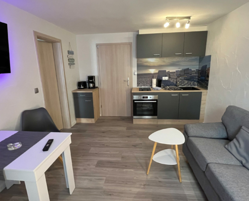 Die Ferienwohnung hat eine Größe von 38 qm, getrennten Wohn- und Schlafraum, WC/Dusche, Küchenzeile im Wohnraum, überdachte Terrasse. Sie ist ausgelegt für die Belegung mit maximal 2 Personen. Vermietung ganzjährig möglich. Stellplatz für ein Fahrzeug ist vorhanden.